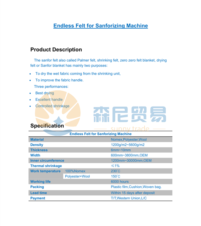 • Product description:Endless Felt for Sanforizing Machine